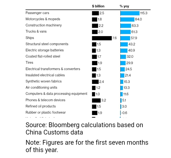 Nigeria, South Africa and Egypt are the biggest African buyers of Chinese products. Construction machinery was among China’s fastest growing exports to Africa in the first seven months, surging 63% year on year.