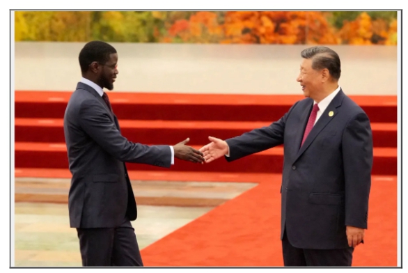 CHINA-AFRICA-DIPLOMACY-FOCAC-FORUM: Chinese leader Xi Jinping welcomes Senegal’s President Bassirou Diomaye Faye during the Forum on China-Africa Cooperation in Beijing last year.Photographer: Ken Ishii/AFP/Getty Images